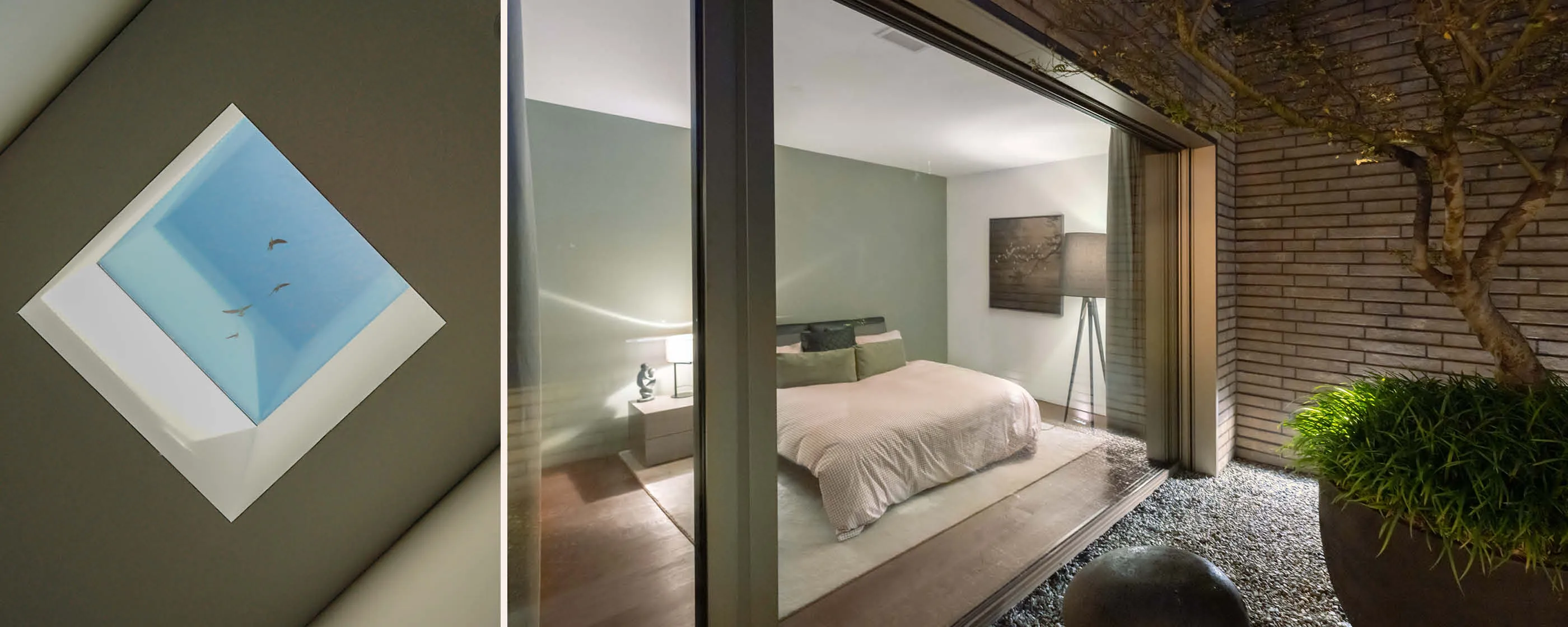 Im Nordwesten folgt das elegante Master-Schlafzimmer, mit eigener Terrasse und geräumigem Ankleidezimmer. Das schöne Ensuitebad wird über ein Dachfenster natürlich belichtet. Und im Nordosten von »skygarden« liegt ein charmantes Kinder-, Gäste- oder Arbeitszimmer mit Terrassenzugang.