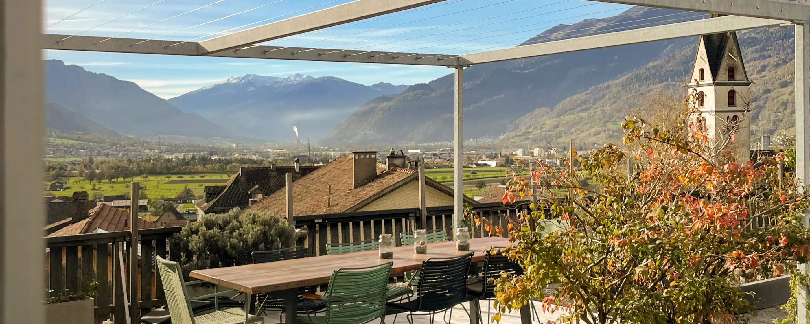 Folgt man dem Lauf des Rheins nach Süden in Richtung seines Ursprungs, rücken die imposanten Alpengipfel immer näher heran. In der geschichtsträchtigen »Bündner Herrschaft« schmiegt sich das malerische Dorf Malans an die sonnigen Weinberge unterhalb der hoch aufragenden Bergmassive.