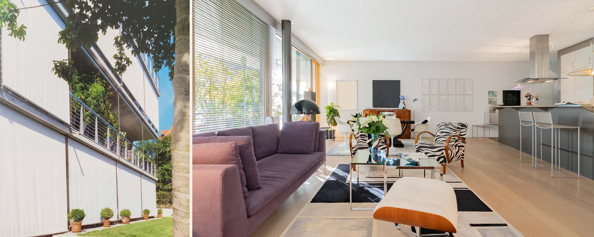 In diesem privilegierten Umfeld erhebt sich ein modernes Wohnhaus mit der eleganten Loftwohnung »ELYSIUM«, die sich mit einer langgezogenen Fensterfront und einer grosszügigen Terrasse vollständig nach Süden zu Licht und Sonne öffnet. Das Loft beeindruckt mit einem komfortablen Bade- und Wellnessbereich mit transluzenten Glaswänden sowie einem Master-Schlafzimmer mit Erker.