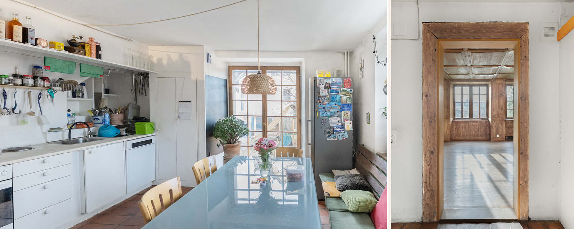 Das Wohnhaus empfängt die Ankommenden mit Holzveranda, heiteren Fensterläden und repräsentativen Fensterachsen auf der Gartenseite. Im Inneren treffen liebevoll renovierte historische Täferungen, Türen und Holzdecken auf zeitgemässe Wohnqualität. Die gemütliche Wohnküche ist über eine breite Freitreppe mit dem Hofbereich verbunden, wo man das gemeinsame Speisen an der frischen Luft fortsetzen kann.