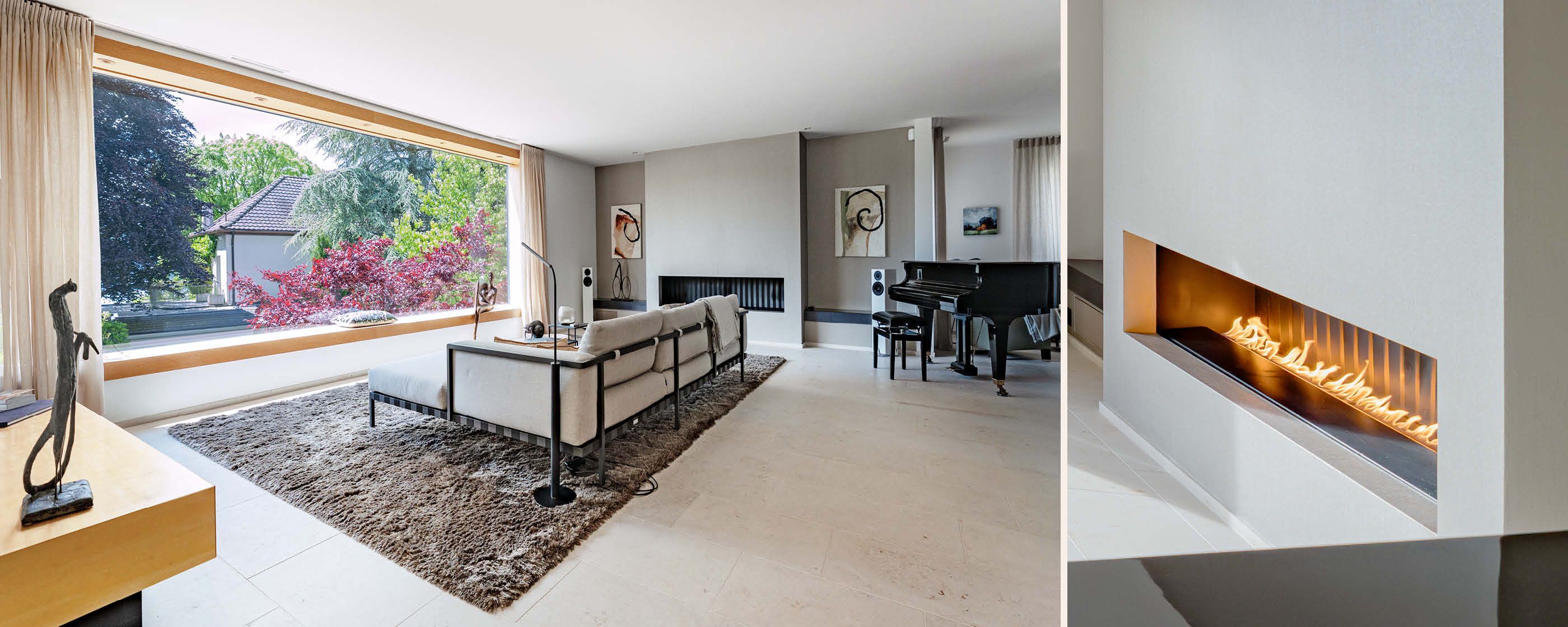 Im Erdgeschoss bilden die grossartige Wohnhalle, der geräumige Essbereich und die erstklassige Küche ein loftartiges Raumkontinuum. Am feierlichen Cheminée lässt ganz entspannt den Blick über die Goldküsten-Landschaft schweifen.
