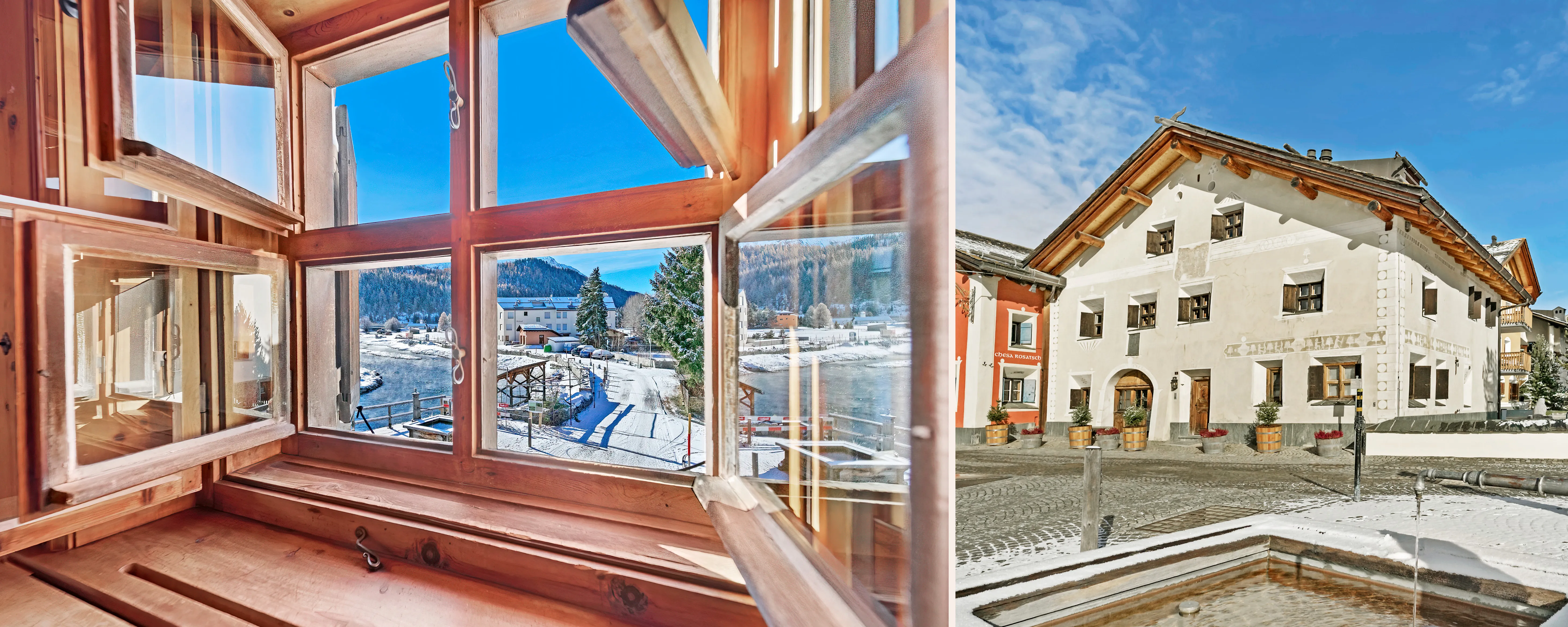 Das »Chesa L-En«, mit den beiden grosszügigen und elegant ausgestatteten Wohnungen in Celerina, am Dorfrand und unmittelbar am Fluss Inn, lassen keine Wünsche offen. Der Innenausbau der gehobenen Mietwohnungen weist eine Liebe zum Detail auf, wie man sie nur selten findet – Schweizerische Handwerkstradition par excellence. Urbane Wohnqualität und regional inspirierte Engadiner Behaglichkeit vereinen sich zu einem edlen, individuellen Wohnstil. Das alte Wandtäfer, welches zum Teil mit Deckenbalken aus hochwertigem lokalen Arvenholz ergänzt wurde, schafft ein rustikales Raumklima. Die massgefertigten Einbauten, wie Wandschränke, Regale und Ablagen, machen die Liegenschaft zu einem schlüssigen, wunderschönen und passenden Gesamtkunstwerk.