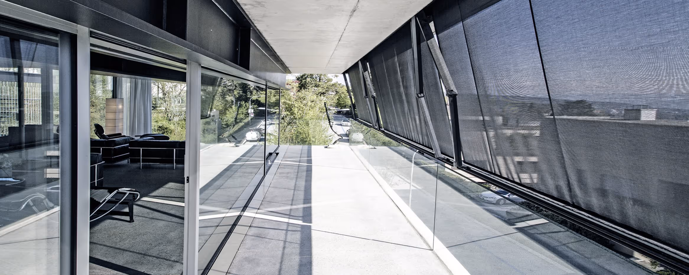 Aus der Tiefgarage gelangt man mit dem Lift direkt in die Wohnung. Über Entrée-artige Eingangssituationen gelangt man schliesslich in den eigentlichen Wohnbereich. Sofort fällt der mehr als grosszügige, stützenfreie Raum ins Auge, der an urbane Lofts erinnert. Die Grenze zwischen Innen- und Aussenraum wird aufgelöst, indem sich die Glasfronten über Schiebeelemente grosszügig öffnen lassen. Auf der riesigen Aussenterrasse lässt sich das luxuriöse Leben auf dem Zürichberg hoch über der Stadt wunderbar zelebrieren.