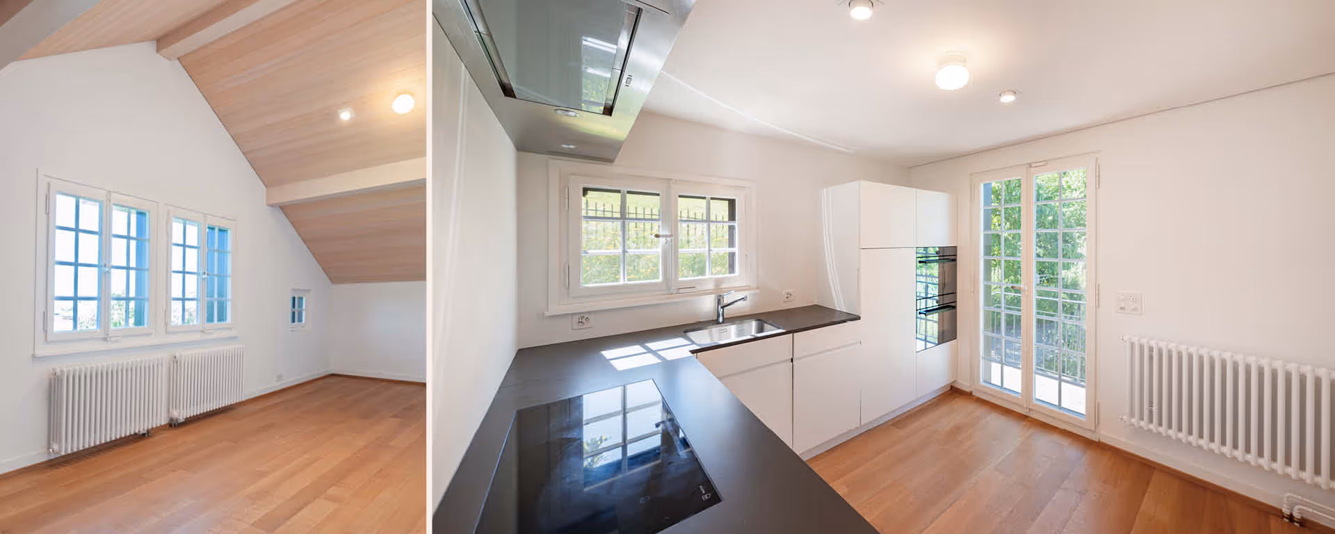 Bereits heute bietet das bestehende Einfamilienhaus ein funktionales, saniertes Zuhause mit rund 120 m² Wohnfläche. Mit 3.5 Zimmern, einer lichtdurchfluteten Wohnküche und einem offenen Wohn- und Essbereich mit Gartenzugang ist es sofort bewohnbar – sei es als langfristiges Heim oder als Übergangslösung auf dem Weg zu einer neuen baulichen Vision.