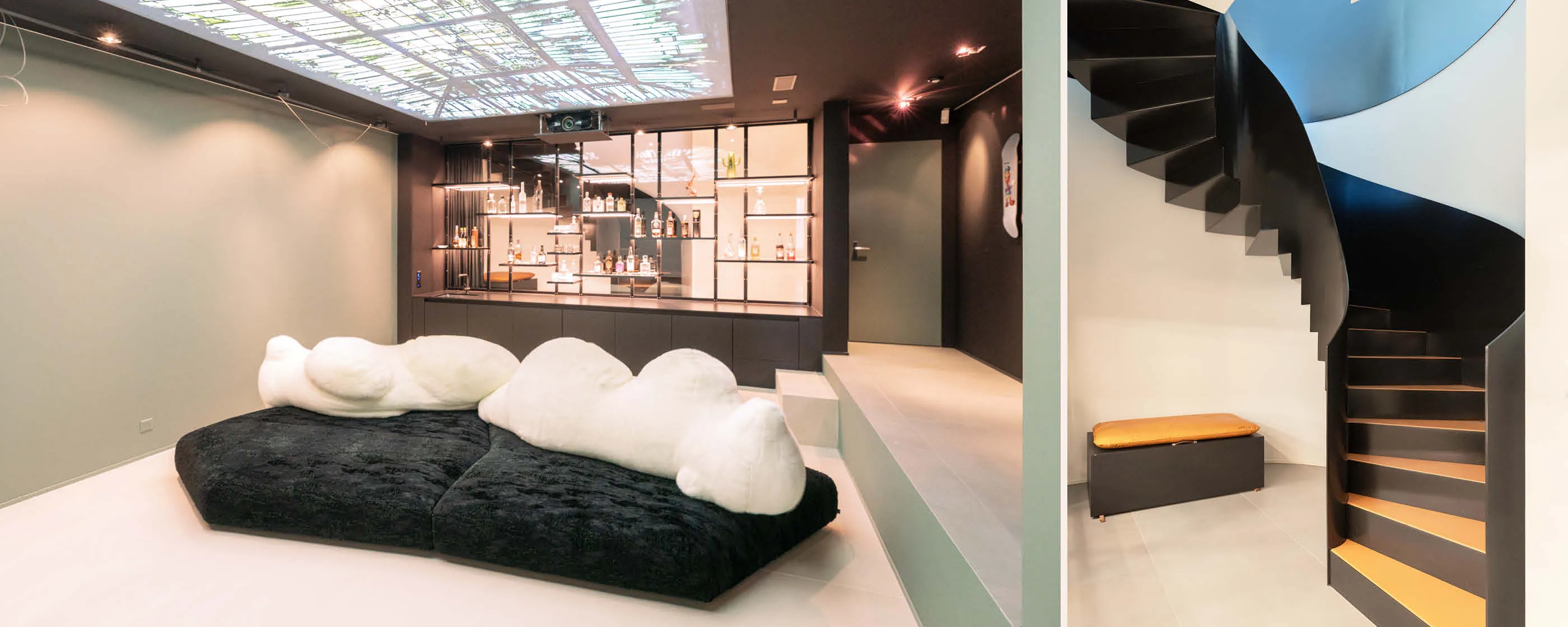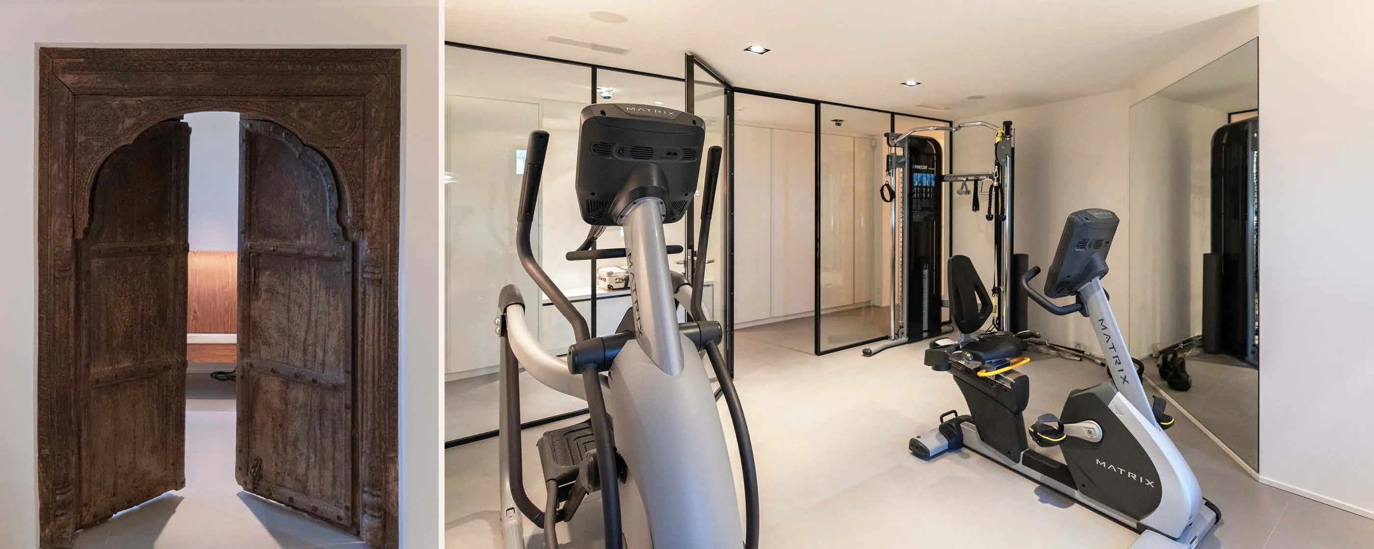 Zwischen Alt- und Neubau spannt sich eine weitläufige Terrasse auf, die im Südosten in einem exponierten Aussichtspunkt gipfelt. Im darunterliegenden Sockelgeschoss befinden sich ein opulenter Spa- und Fitnessbereich, ein eindrucksvolles Home-Cinema sowie eine grosszügige Gäste-Suite.