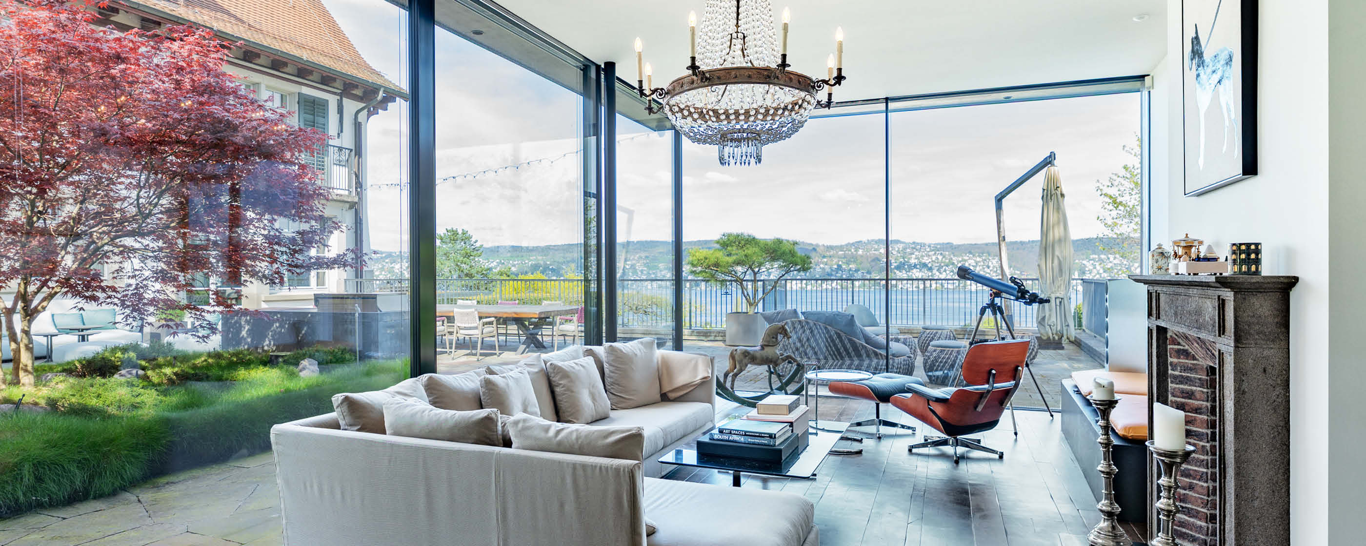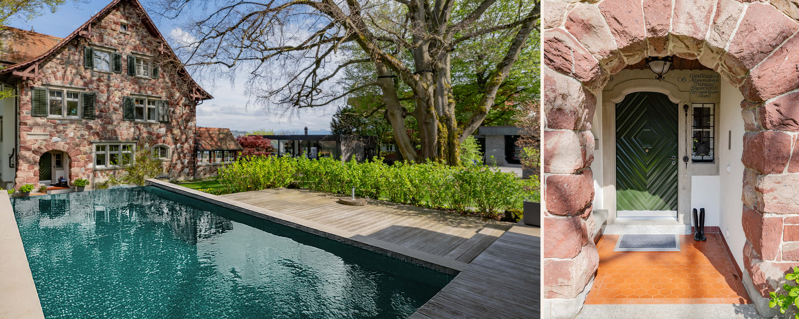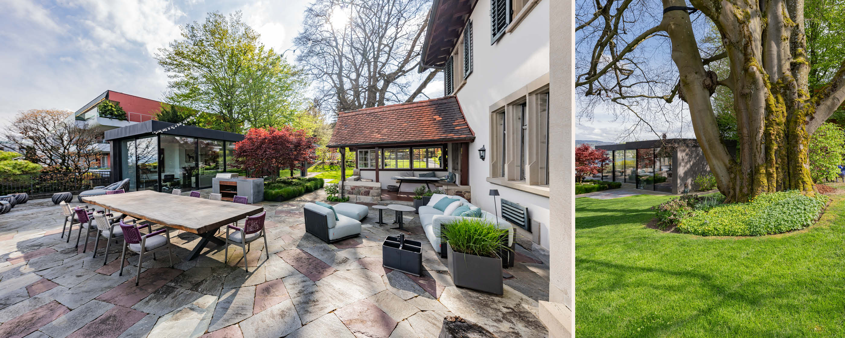 Hoch über Kilchberg schmiegt sich die luxuriös ausgestattete Jahrhundertwende-Villa samt modernem Anbau, Aussenpool und Aussichtsterrasse an den Sonnenhang. Von »ZENITH« geniesst man eine atemberaubende Aussicht über den See und die Berge.